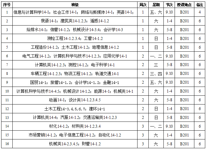 2015-2016学年第一学期2014级职业生涯规划(二)课表
