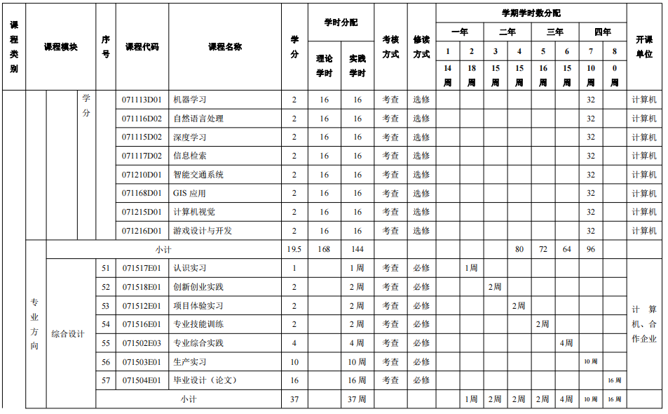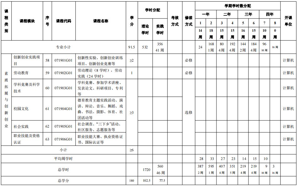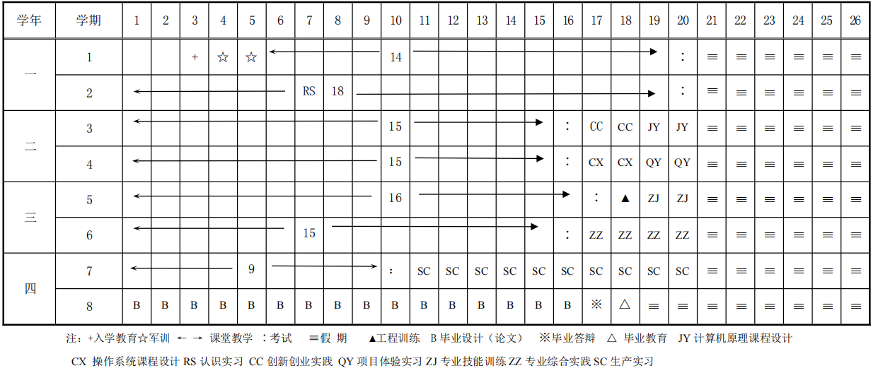 附件2:计算机科学与技术专业教学进程表